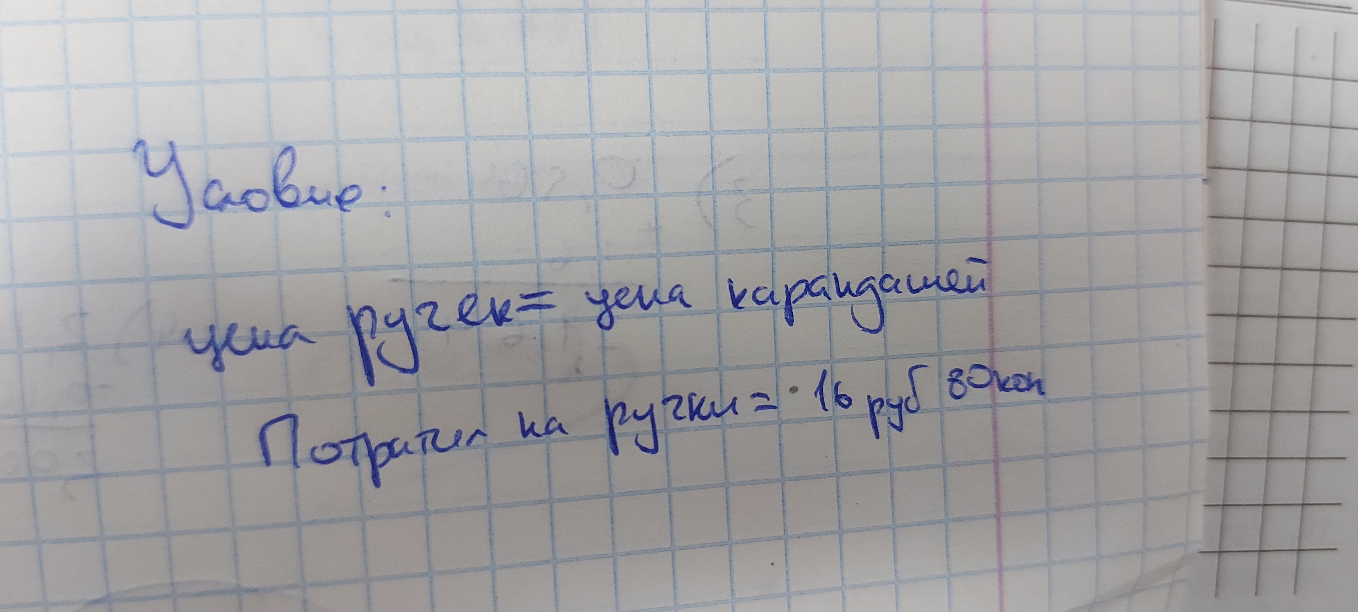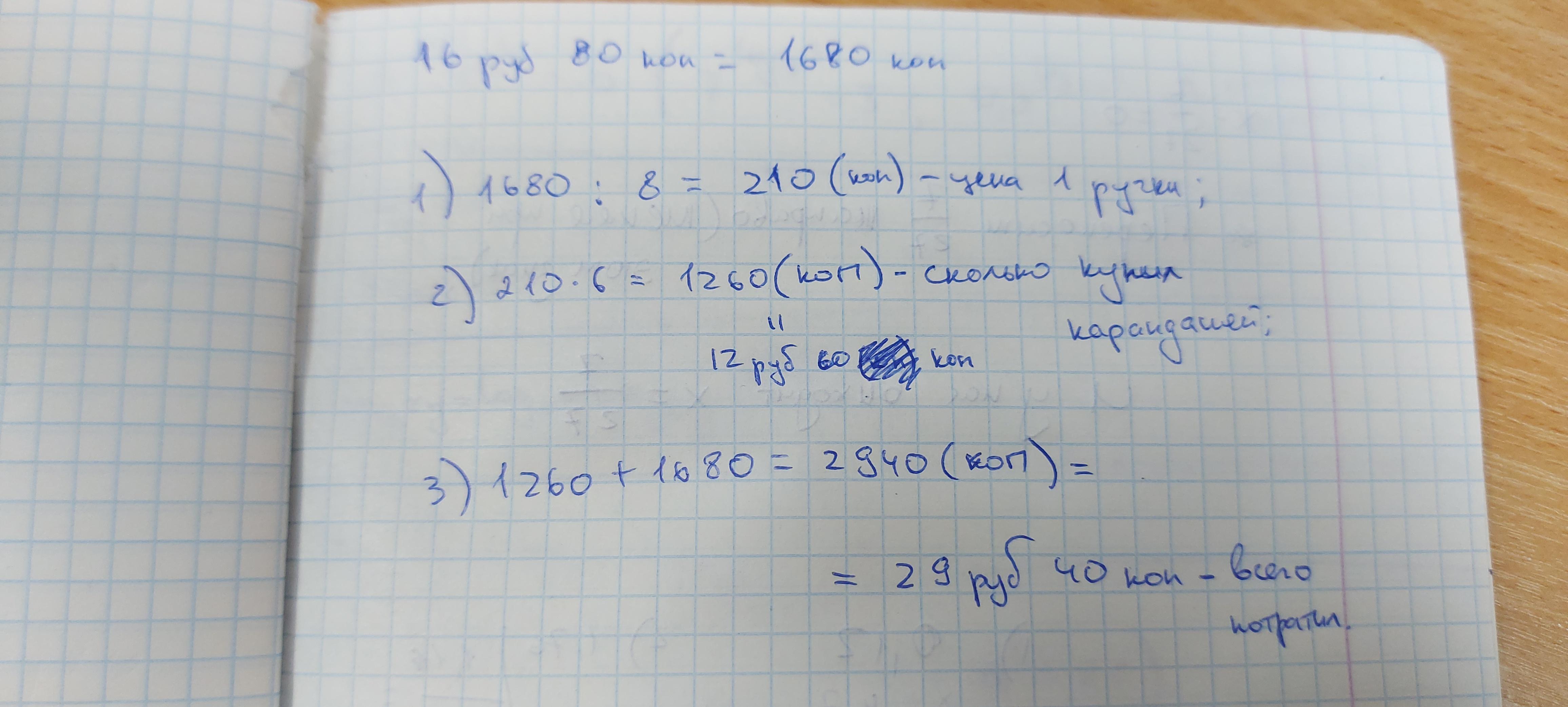 с условием задачи!!!ДОМАШНЕЕ ЗАДАНИЕ (10) Выполни задание. Ученик купил 8 ручек и 6 карандашей по оди- наковой цене. За ручки он заплатил 16 рублей 80 копеек. Сколько заплатил ученик за карандаши? Сколько стоит вся покупка? Набери возможный вариант купюрами и монетами в рублях.