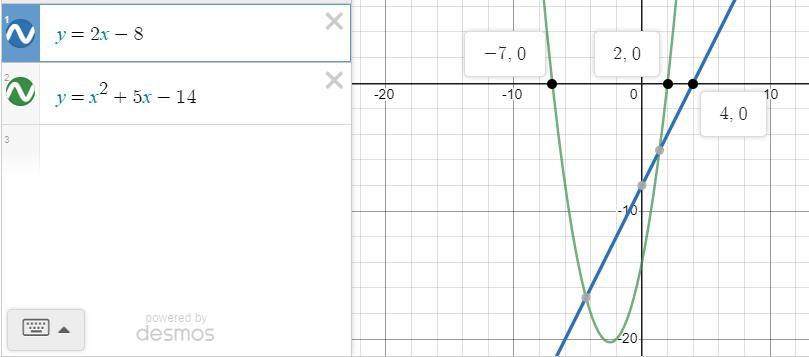 Получаем такую картину и точки пересечения с ось X: -7, 2, 4