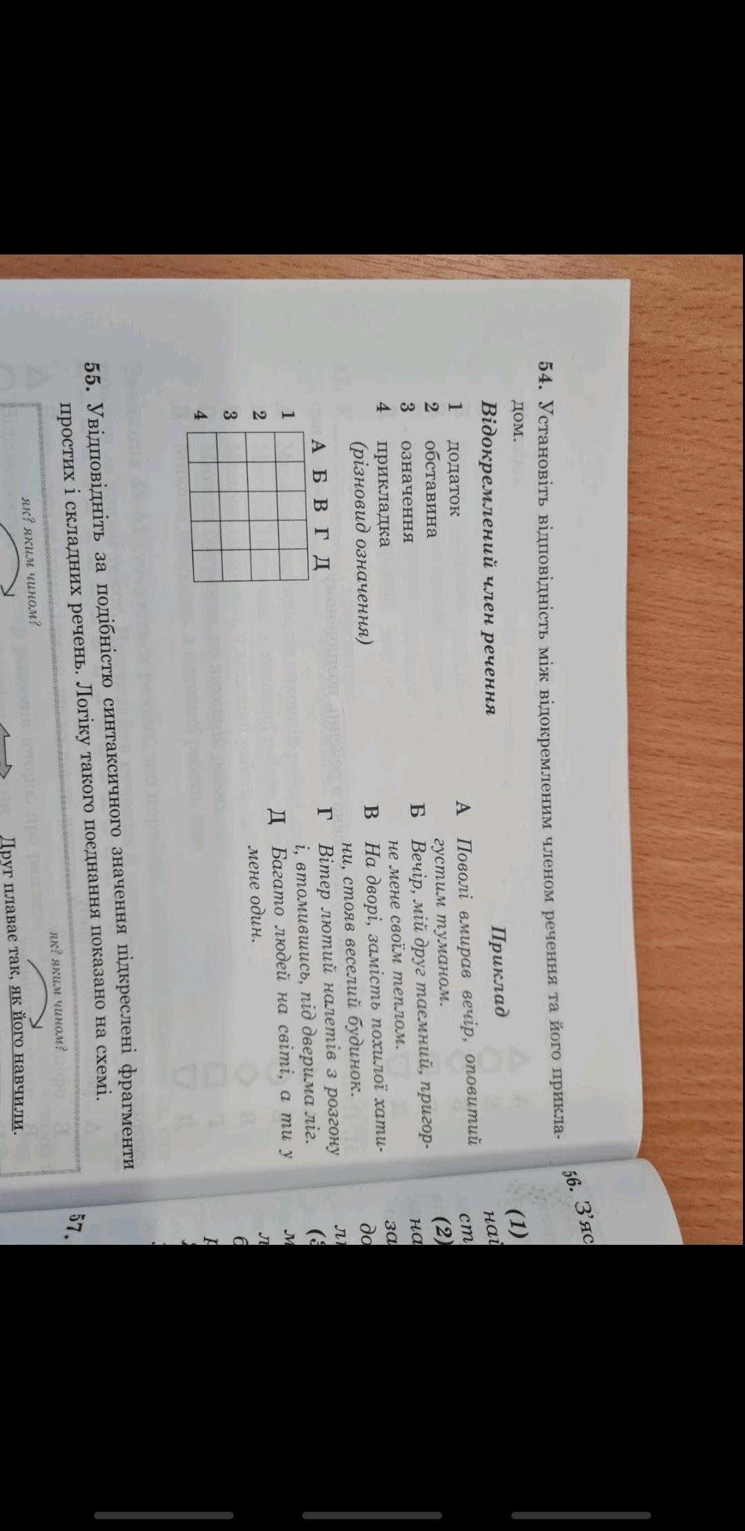 100 балів! Допоможіть будь ласка! Треба установити відповідність між відокремленим членом речення та його прикладом. Речення прикріплені нижче.