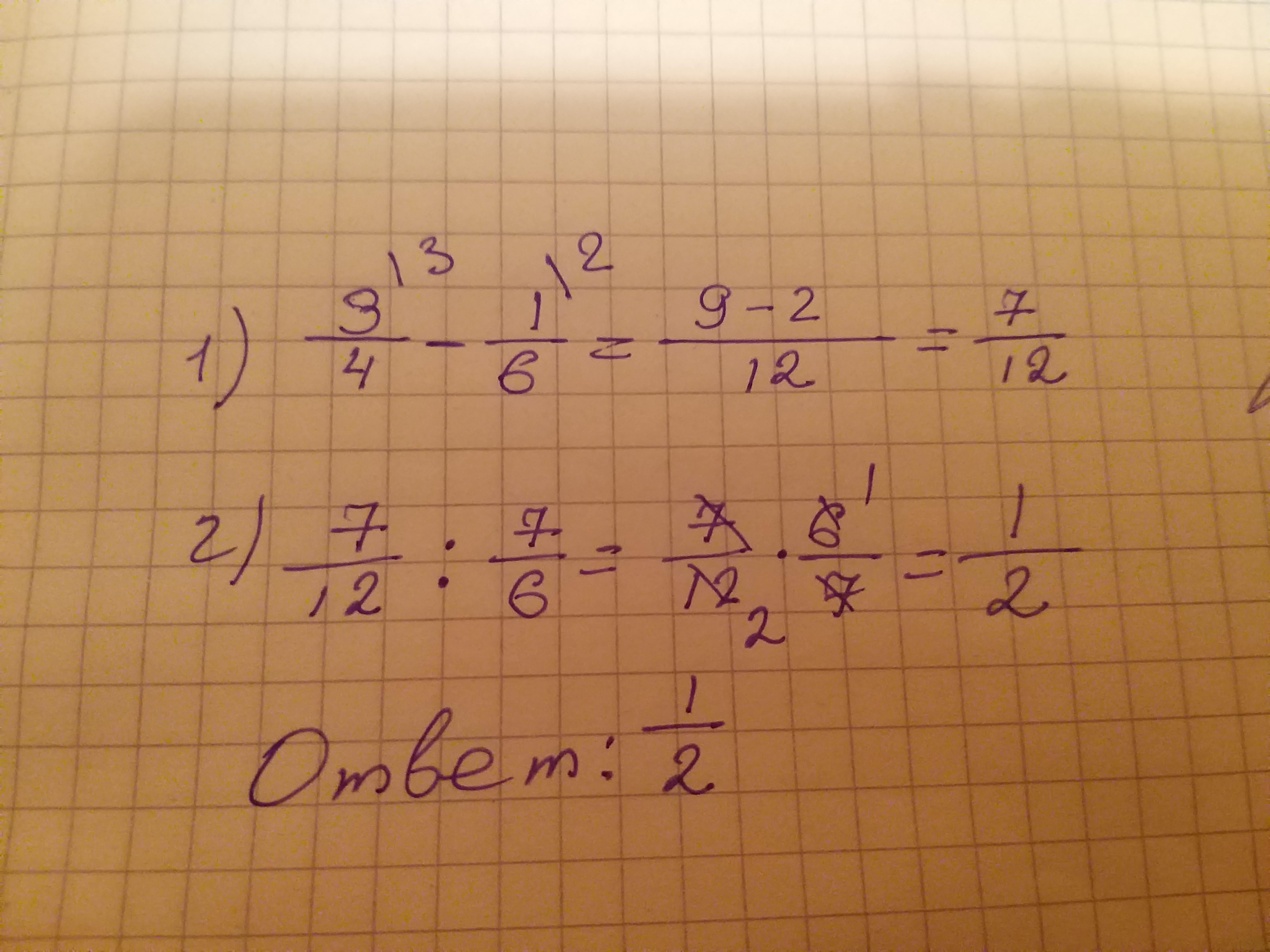 (3/4-1/6):7/6=7/12•6/7=1/2
