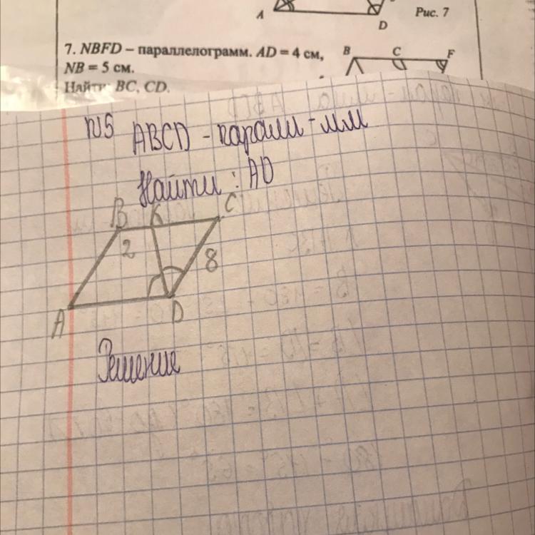 AD = BC = BK + KC = 2 + 8 = 10 ( cм ) ; AD = 10 см .