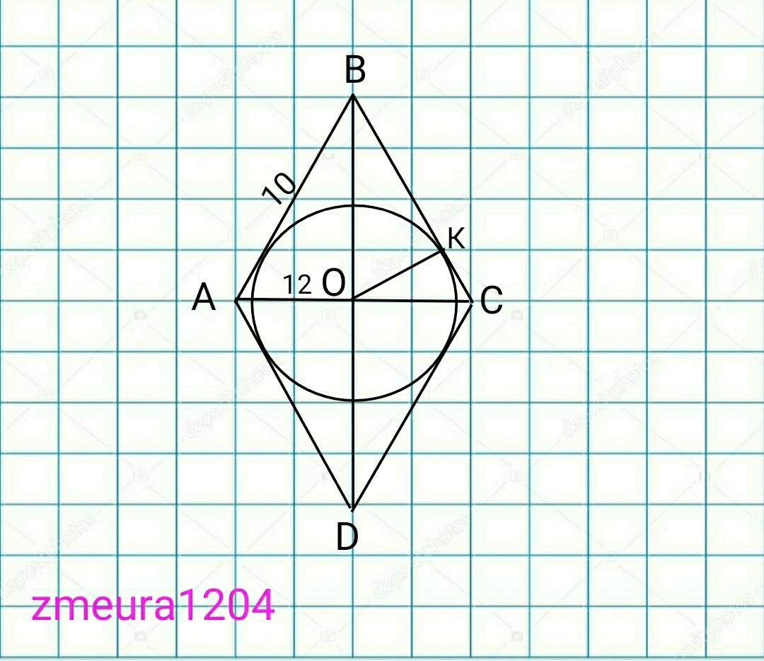 сторона ромба равна 10 см Одна из диагоналей 12 найдите радиус вписанной в ромб окружности