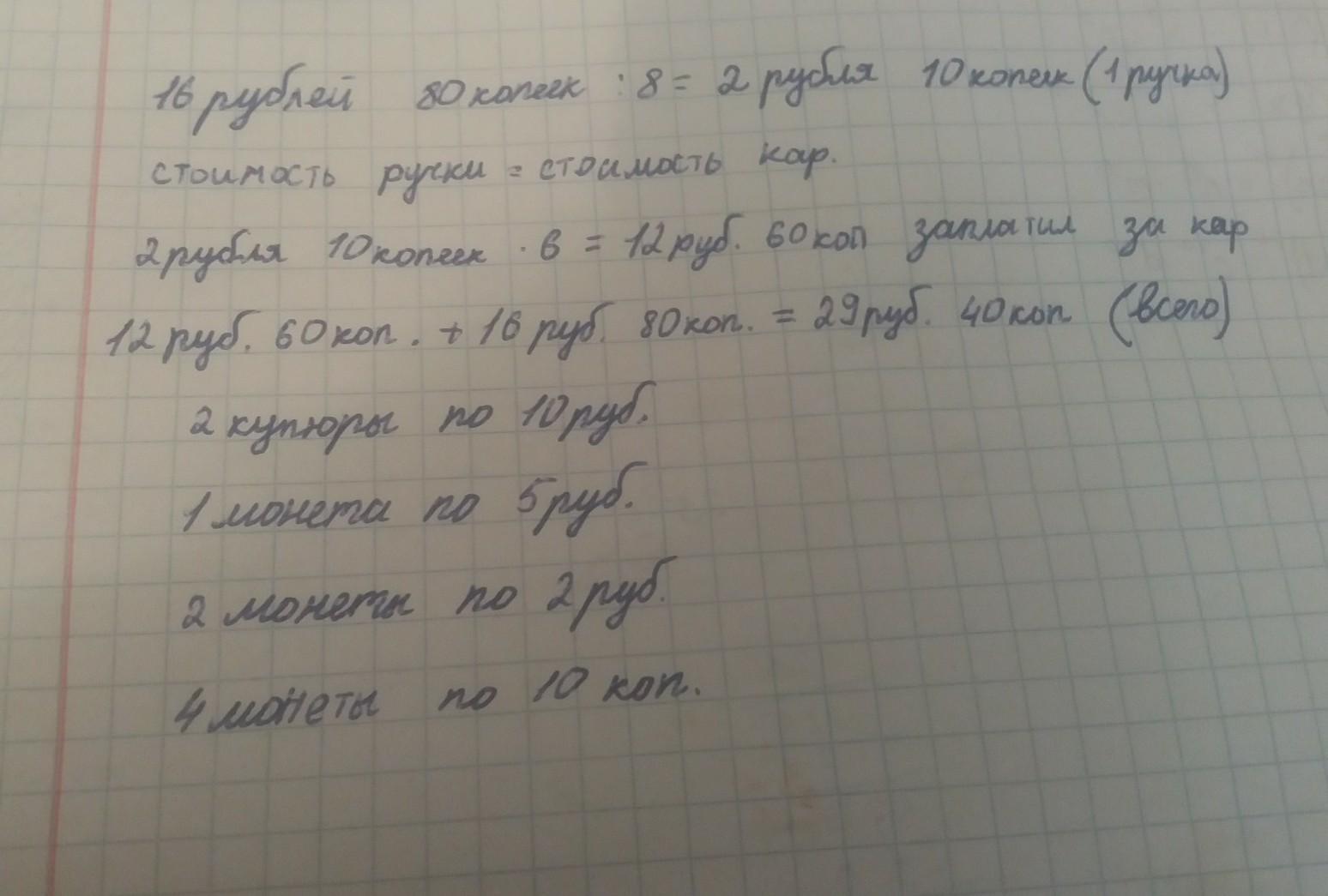 одна роза ДОМАШНЕЕ ЗАДАНИЕ 10) Выполни задание, почему Нови объясни Ученик купил 8 ручек иб карандашей по оди- наковой цене. За ручки он заплатил 16 рублей 80 копеек. Сколько заплатил ученик за карандаши? Сколько стоит вся покупка? Набери возможный вариант купюрами и монетами в рублях.