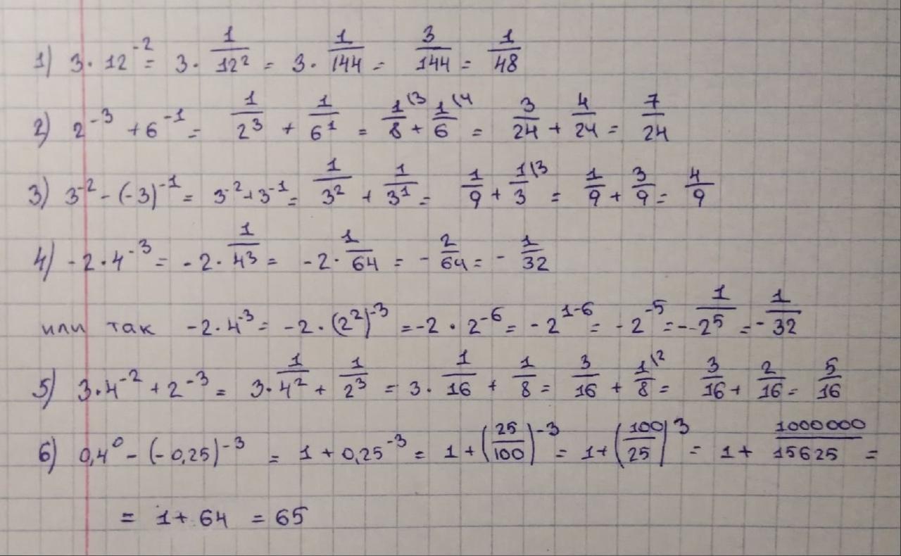 0,4^0-(-0,25)^(-3)=1-(-1/4)^(-3)=1-(-4)^3=1-(-64)= 1+64=65 nfr ;t ghjot)