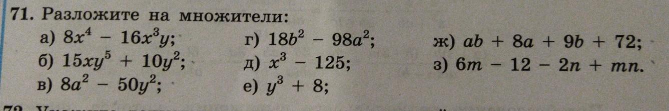 ж) аb + 8а + 9b + 72 = а(b + 8) + 9(b + 8) = (b + 8)(а + 9)