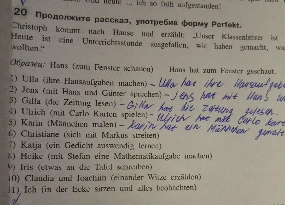 1) Ulla hat ihre Hausaufgaben gemacht.