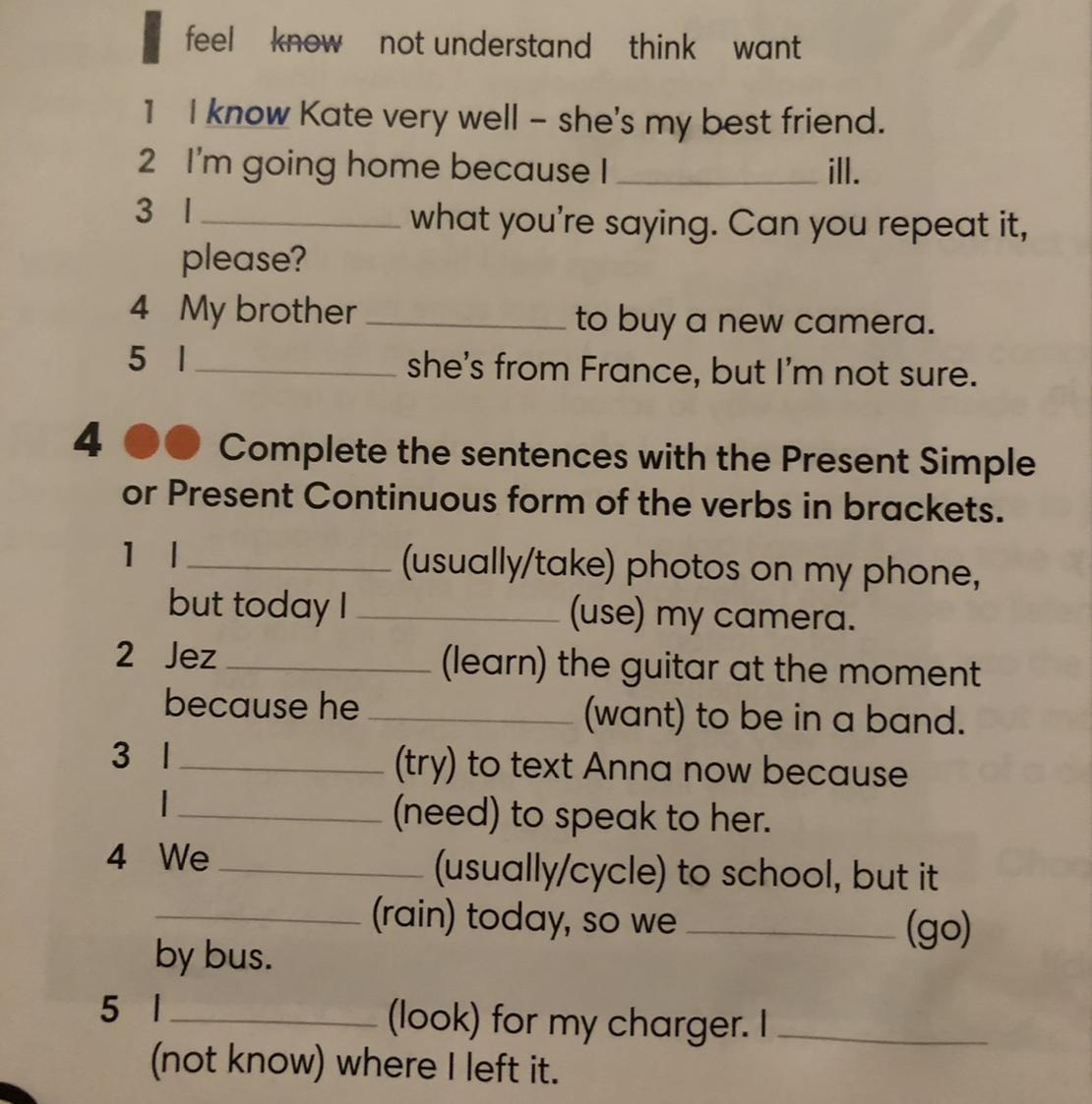 4 Complete the sentences with the Present Simple or Present Continuous form of the verbs brackets .