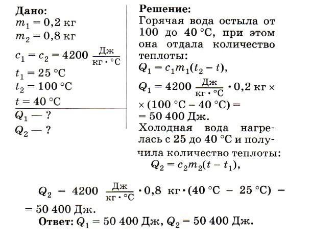 в стакан с водой массой 150 грамм темп. 15 град. налили воды 100 грамм темп. 50 градусов определить температуру смеси и колво теплоты отданное горяей водой и колво теплоты принятое холодной водой