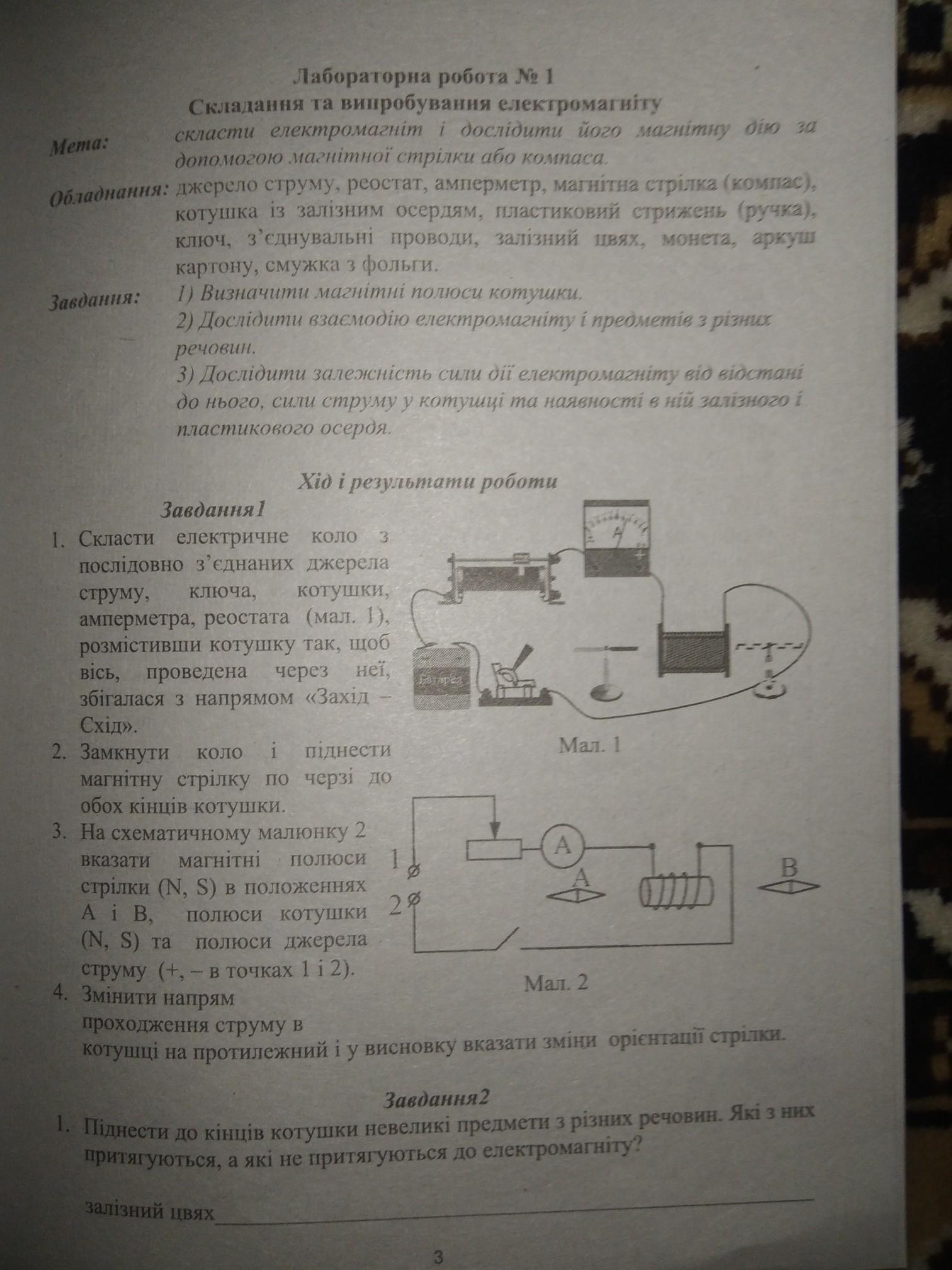 Піднести до кінців котушки невеликі предмети з різних речовин. Які з них притягуються, а які не притягуються до електромагніту? залізний Цвях...