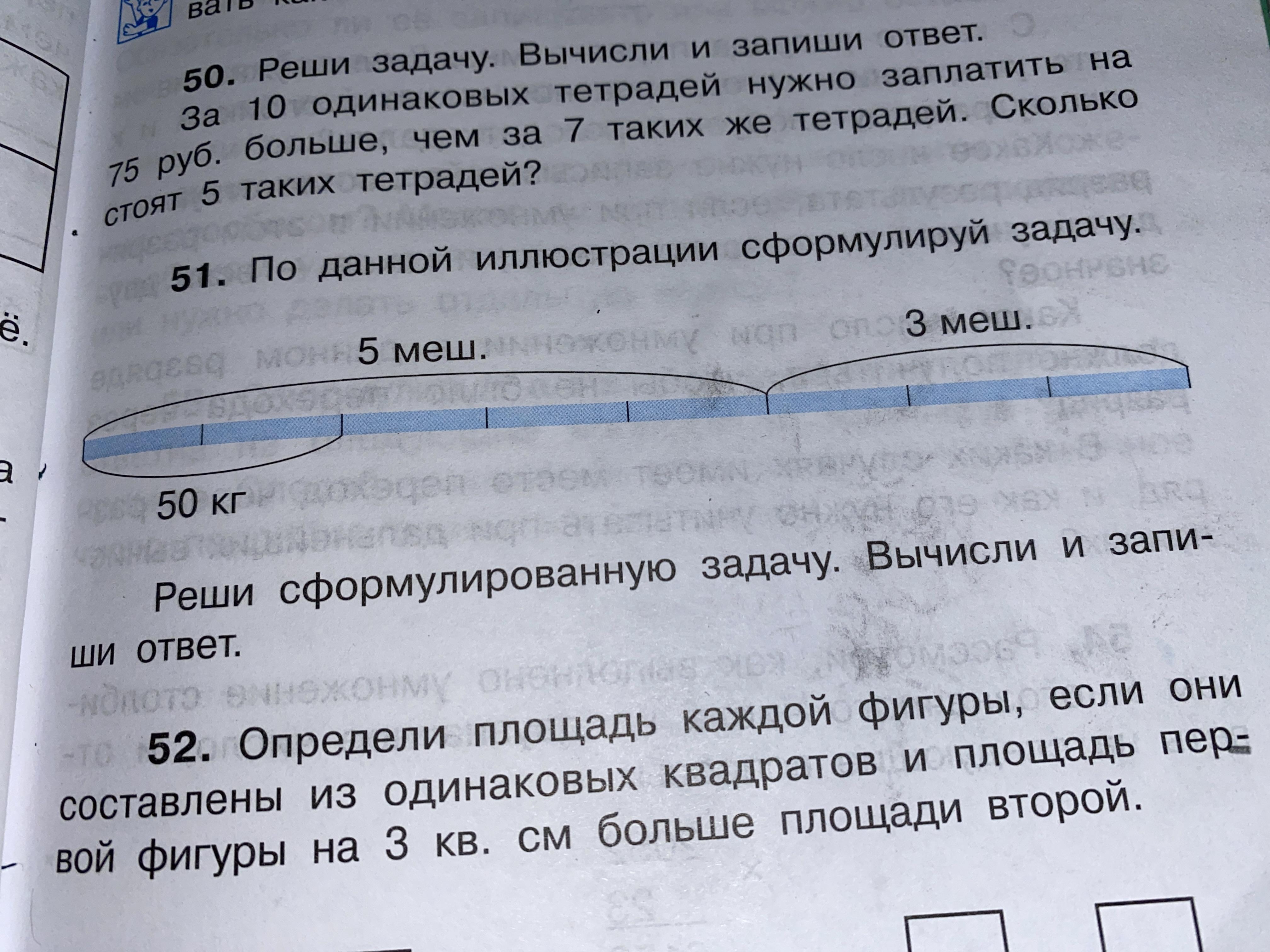 2 одинаковых мешка весят 50 кг. Сколько весят 5 таких мешков? 3 таких мешка?