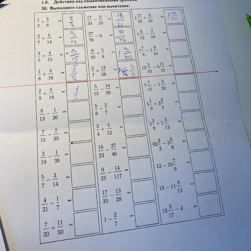 Ответ:9/18;15/26;7/30;3/38;7/14;1/21;50/50=1 - столбик /\/1