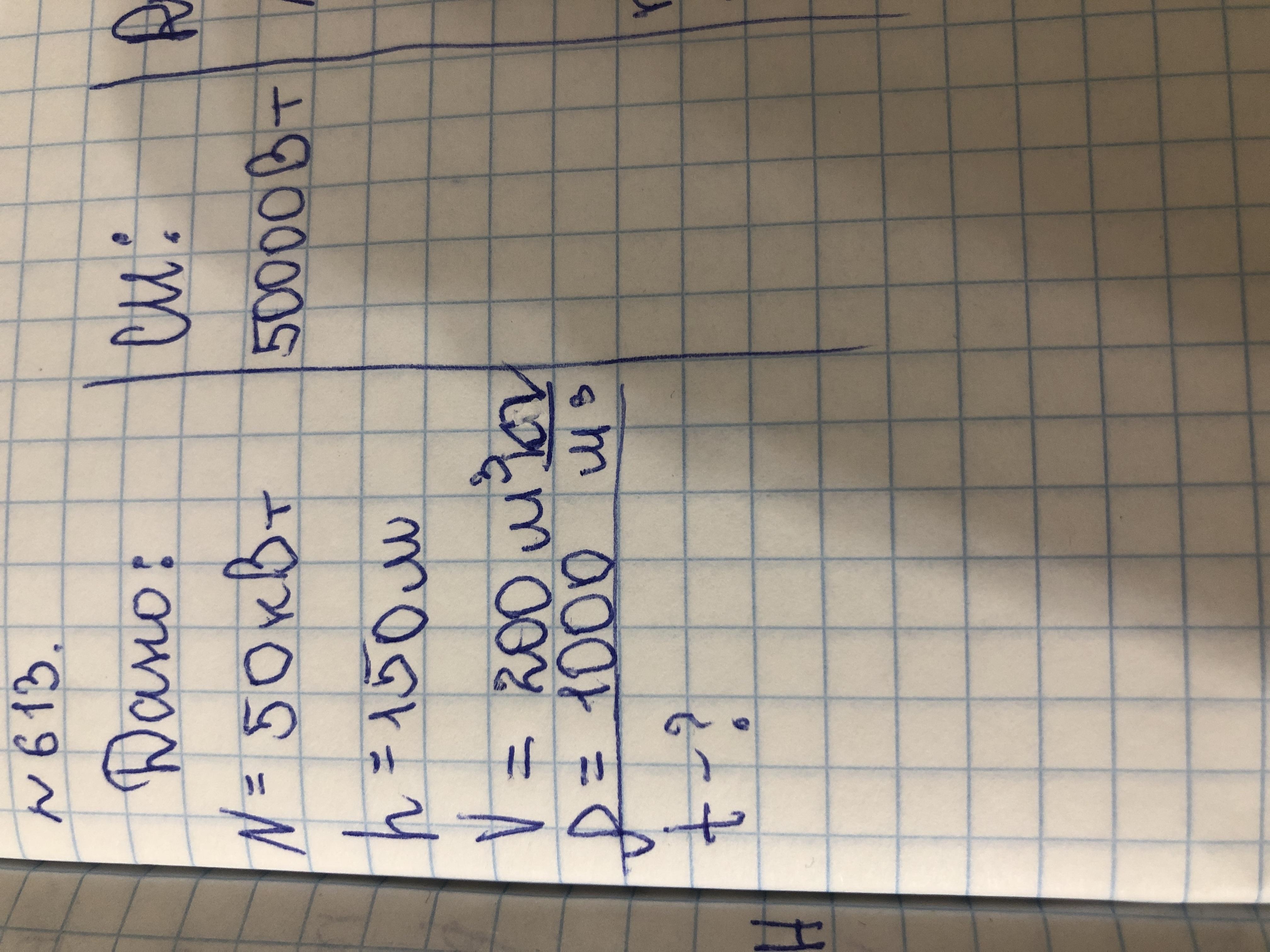 t = (1000 кг/м³ × 200 м³ × 9.8 Н/кг × 150 м) / 50000 Вт = 5880 с