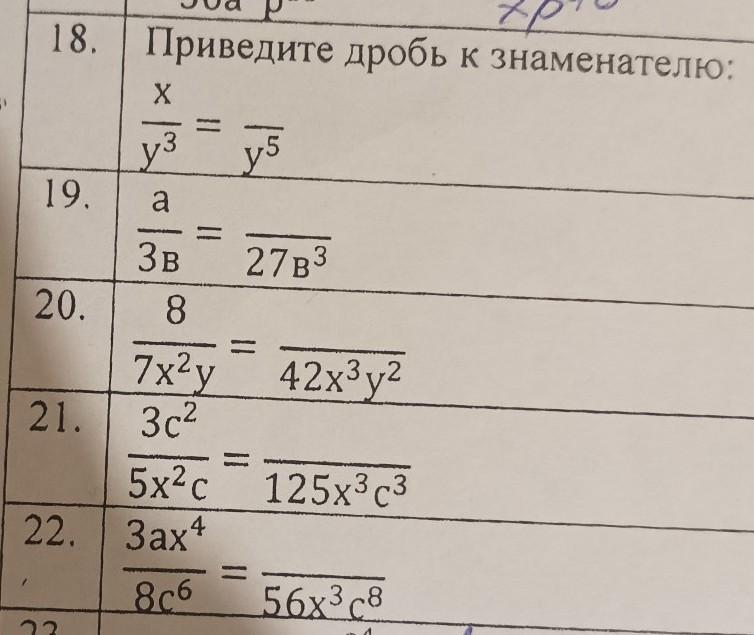 22) 3ax⁴/8c⁶ = 3ax⁴• 7x³c²/56x³c⁸ => 21ax⁷c²/56x³c⁸