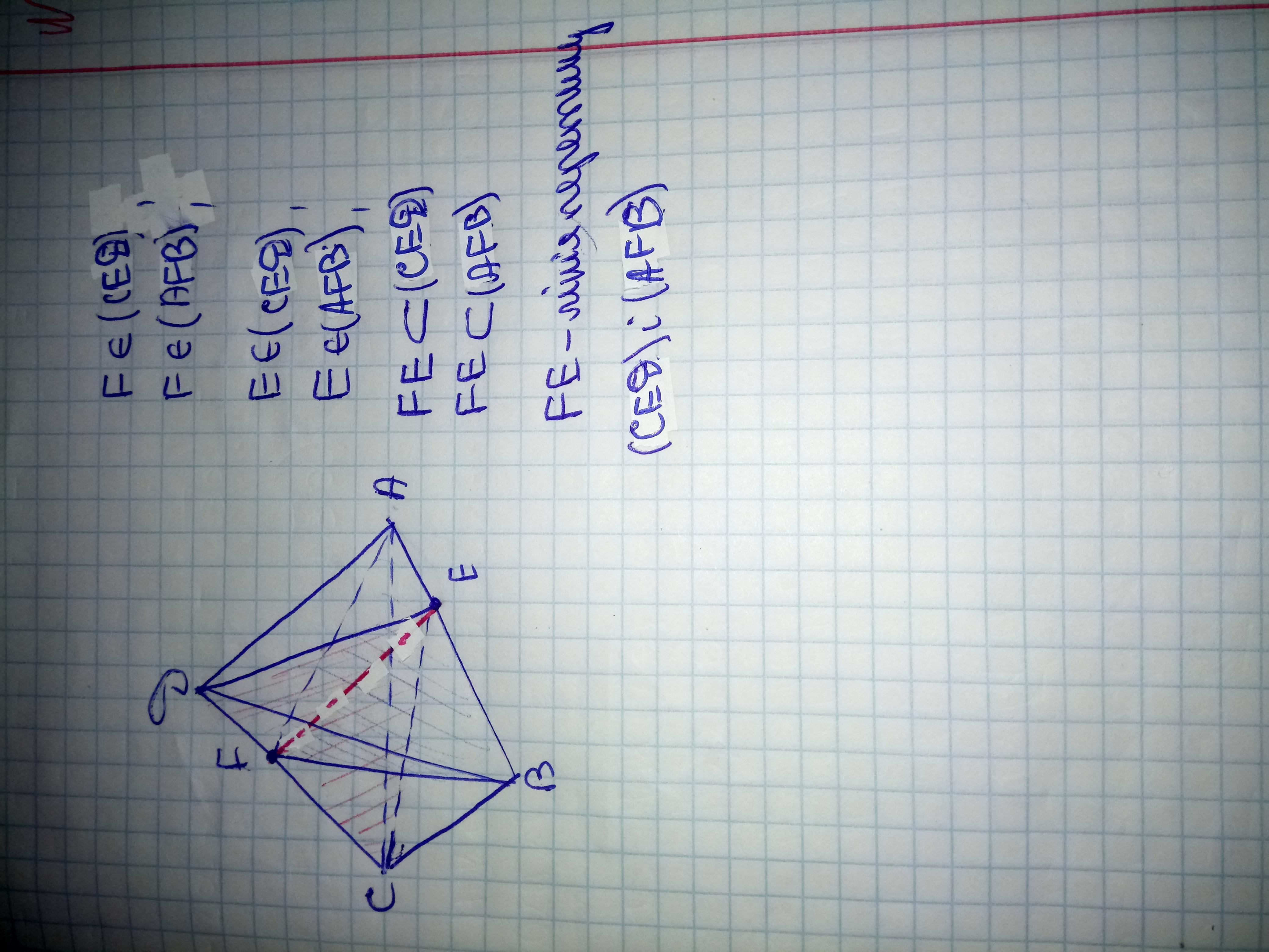 На ребрах AB і CD тетраедра DABC позначили відповідно точки E і F. Побудуйте лінію перетину площин AFB і CED