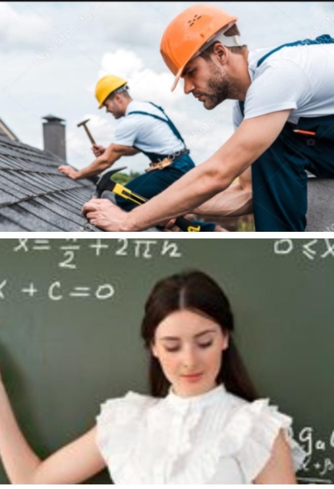 Труд строителя - созидательная деятельность. Работникам приходится прикладывать немало физических усилий в ходе строительных работ. Одетые в форму и защитные каски, они покрывают крышу здания. Их труд требует множества технических знаний, опыта, сноровки. Чаще они работают бригадами, где от труда одного человека зависит результат команды.