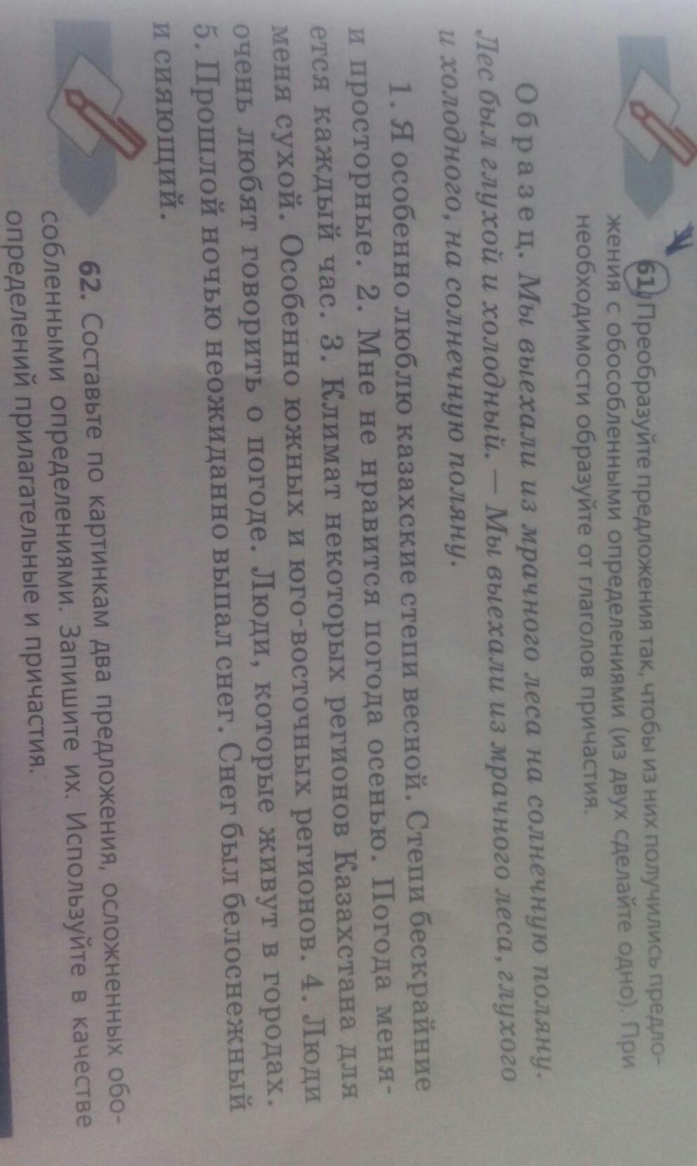 61. Преобразуйте предложения так, чтобы из них получились предложения с обособленными определениям (из двух сделайте одно). При необходимости образуйте от глаголов причастия.