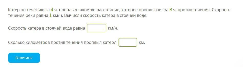 Сколько километров против течения проплыл катер?
