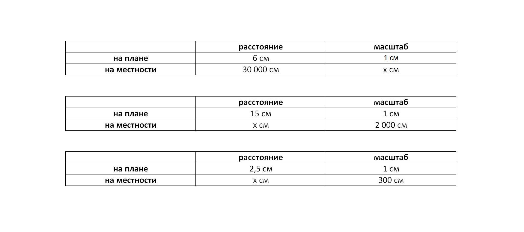 ⇒ x = 30 000 · 1 : 6 = 5 000 см. То есть искомый масштаб 1:5 000.