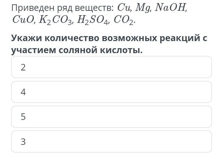 Из приведенных ряд веществ участвуют 4 веществ при реакции с соляной кислотой