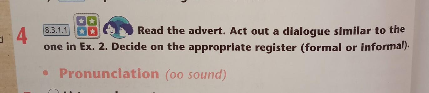 Прочитайте рекламу (скорей всего у вас там есть какой-то текст). Разыграйте диалог, аналогичный приведенному в задании 2 (или в примере 2).
