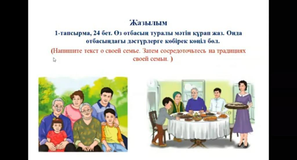 Менің отбасымда * адам бар. Мен отбасымды жахсы көремін. Отбасы деген жахсы емеспе, сен бір қателык ерді жасап койсан соны кешіре быледі, және оны кайталамауды, жахсы болуды үйретеді. Егер отбасым болмаса мені ешкім коргамайды, колдамайды. Сол үшін менде кейн үлкейгенде керсінше отбасымды мен коргайтын боламын.