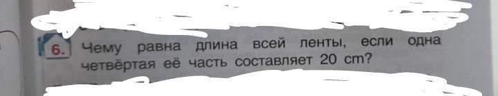 Чему равна длина всей ленты, если она четвёртая её часть составляет 20 cm?
