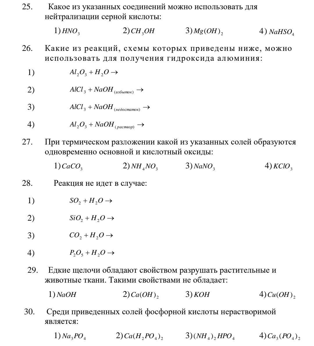 30. Ca3(PO4)2 нерастворимая соль в воде