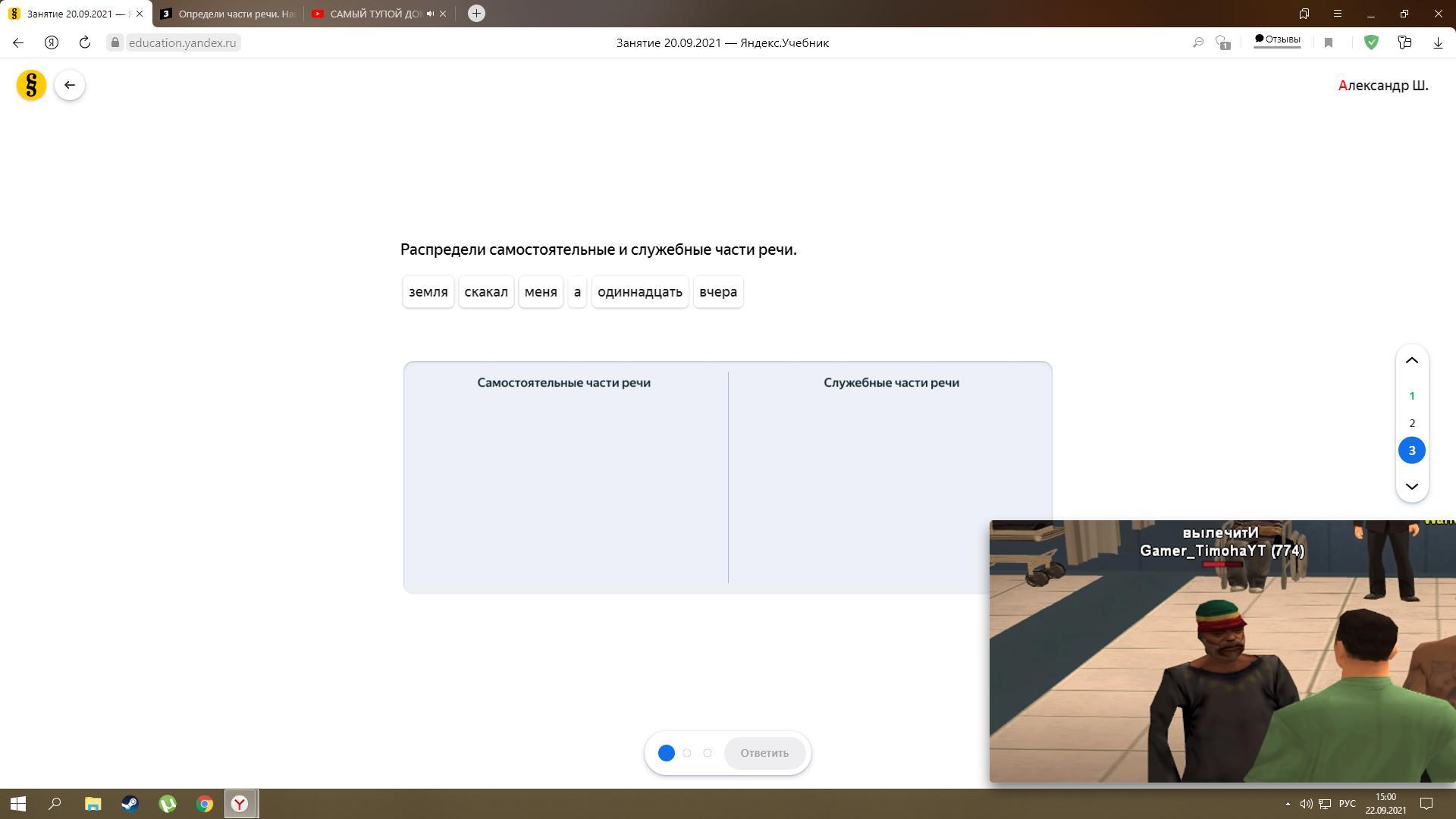 земля(сущ.), сказал(глагол), меня(местоимение), одиннадцать(числител.), вчера(наречие)