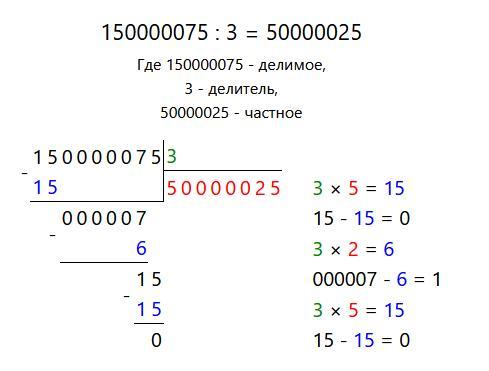 Сумма его чисел равна: 1+5+7+5=18. А 18 в свою очередь делится на 3 без остатка, поэтому и данное сложное число также делится на 3 без остатка. Получится 50000025.