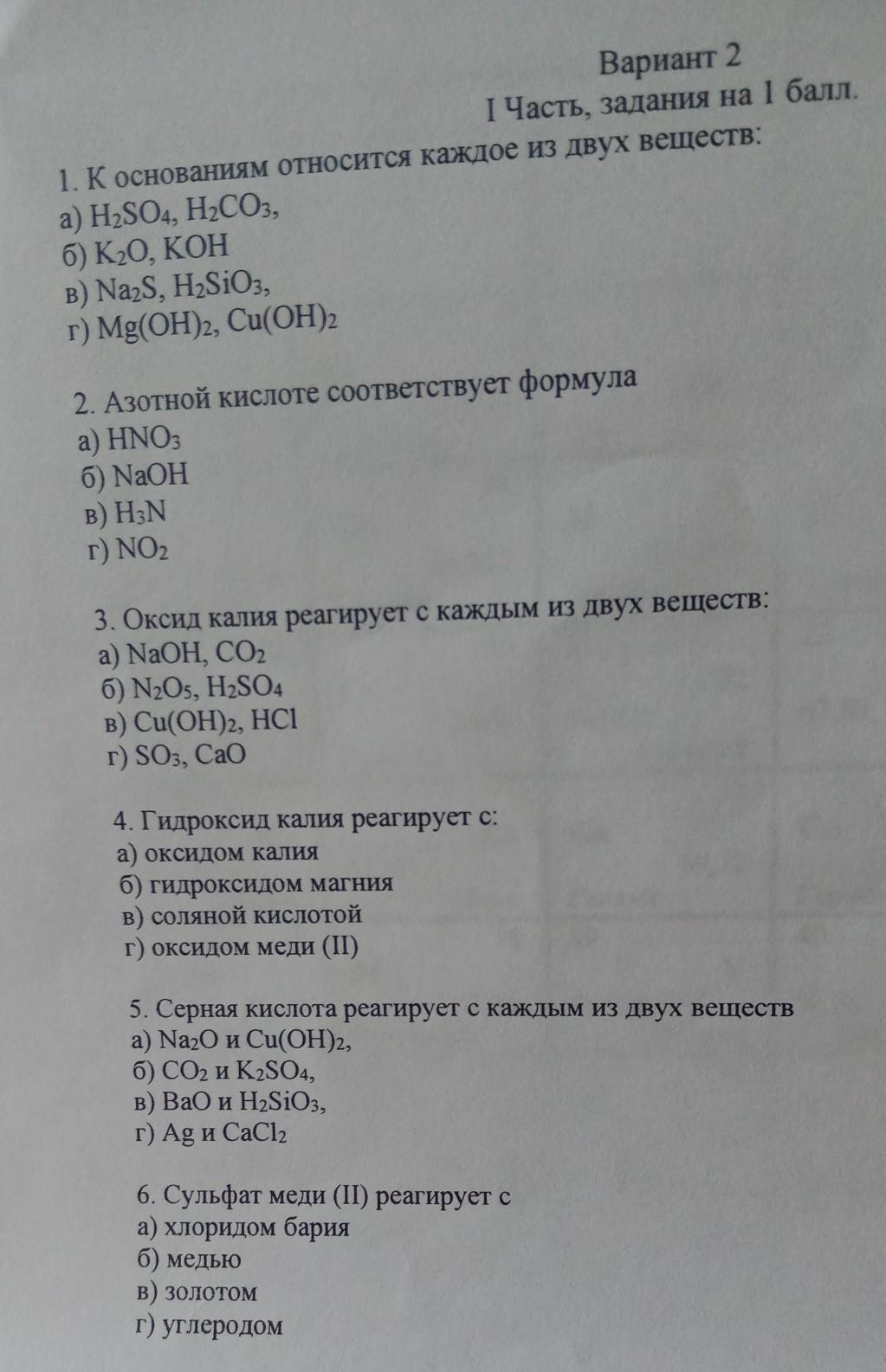1) Mg(OH)2 и Сu(OH)2 - основания