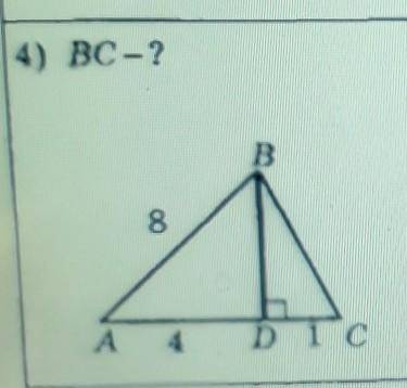 АД=4. ВС=√АВ²-√АС²=√8²-√5²≈6,2