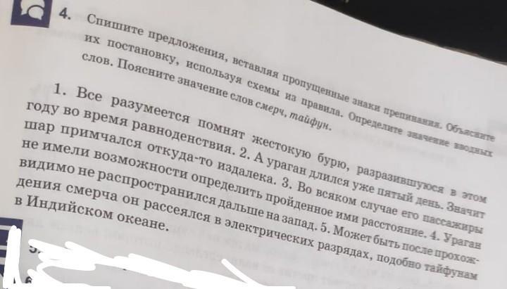 Спишите предложения вставляя пропущенные знаки препинания Объясните их постановку используя схемы исправила Определите значение заводе их слов поясните значение слов смерч Тайфун