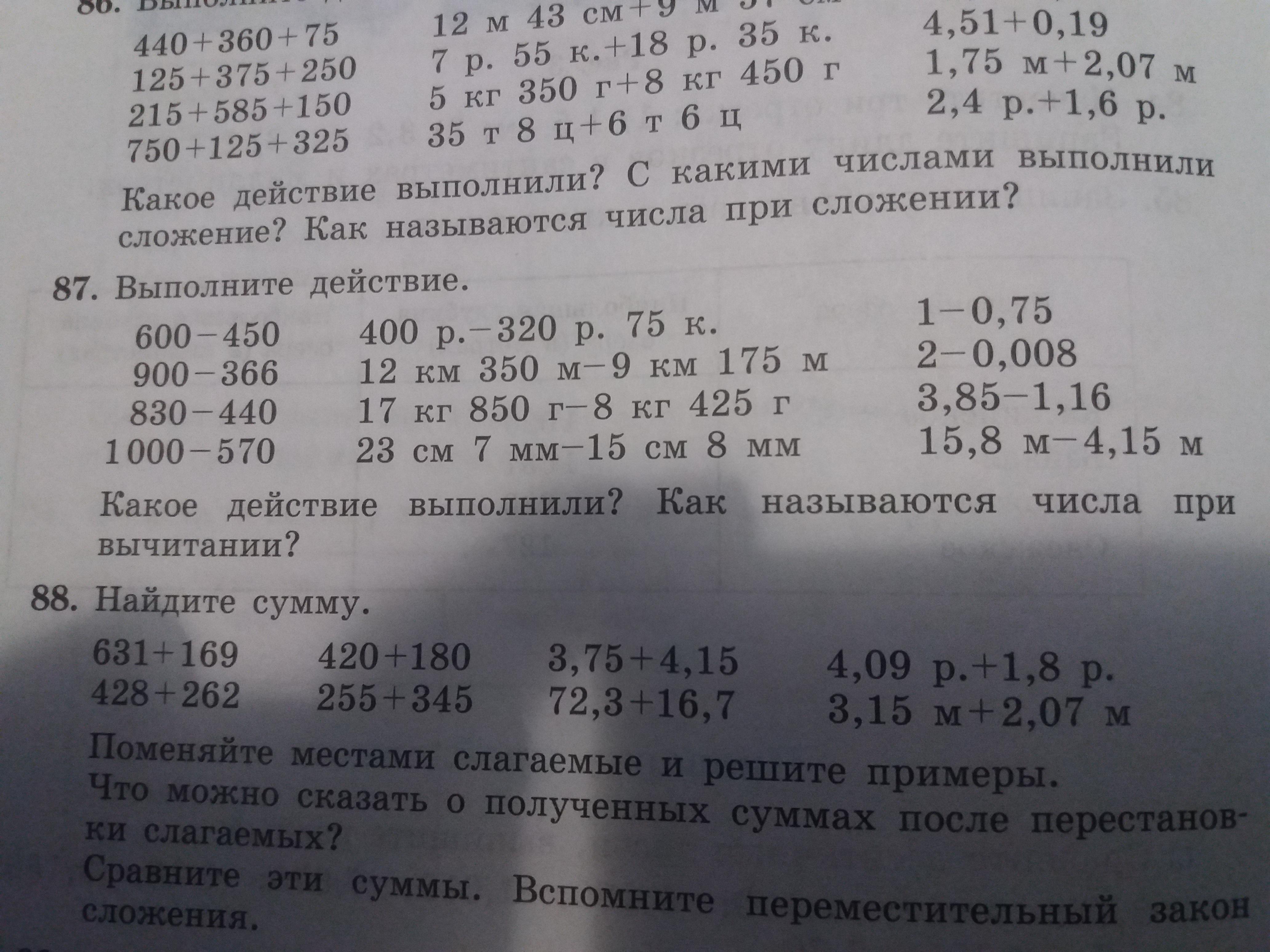Прошу помощи!!! Тема урока вычетание целых чисел и десятичных дробей. Номер 87. Все примеры. Выполнить действия.