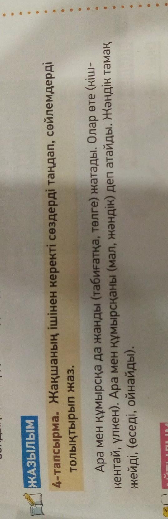 Ара мен құмырсқа да жанды табиғатқа жатады . Олар өте кішкентай . Ара мен құмырсқаны жəндік деп атайды . Жəндік тамақ жейді , өседі
