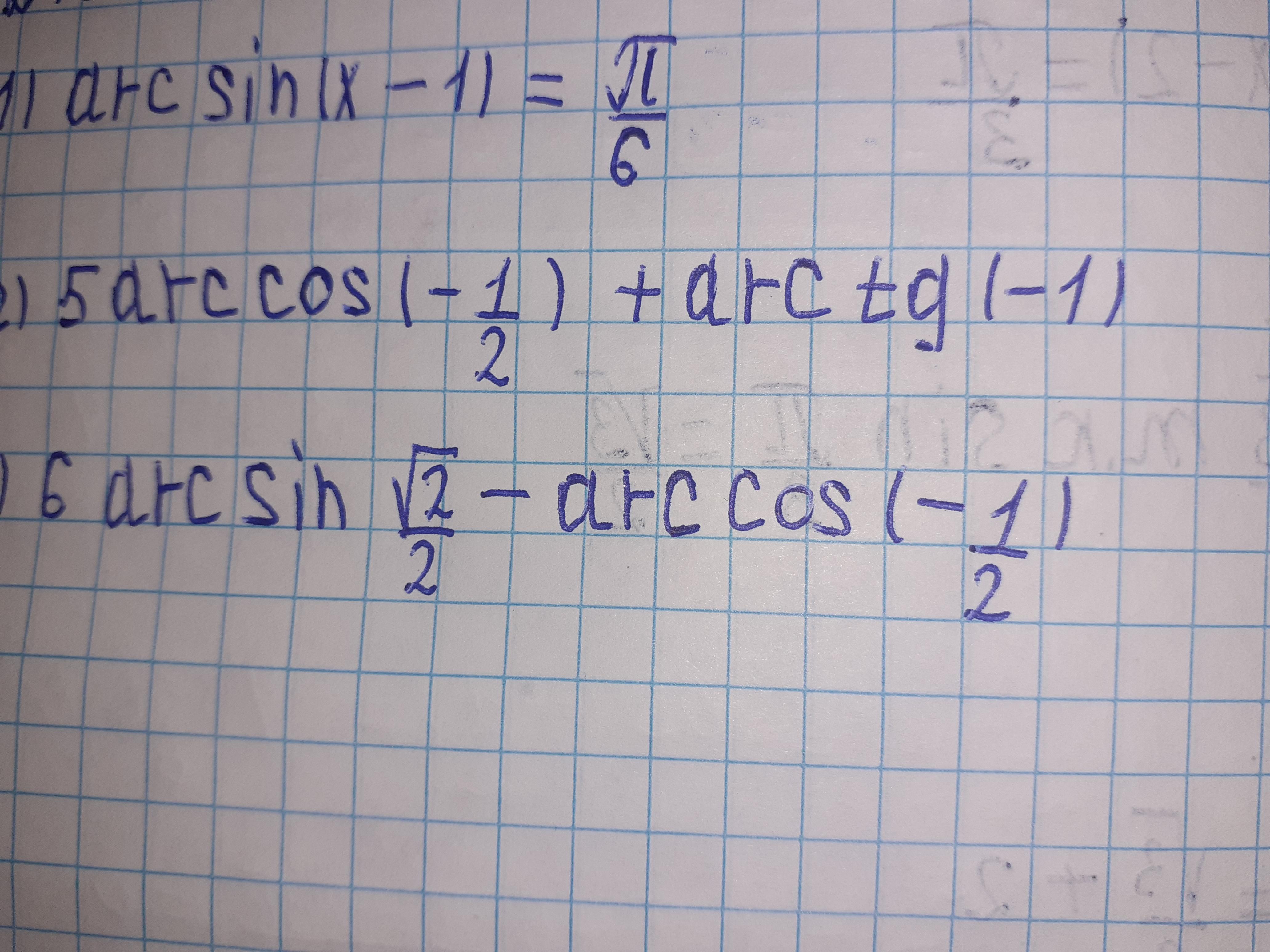 5arccos(-1/2) + arctg (-1) = (-5π/3) + (-π/4) = (-20π/12) - 3π/12= - 23π/12