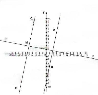 отметьте на координатной плоскости точки A (3;-6) B (1;4) и M (-5;2). Проведите через точку M прямую CD параллельную прямой AB и прямую EK, перпендикулярную AB.