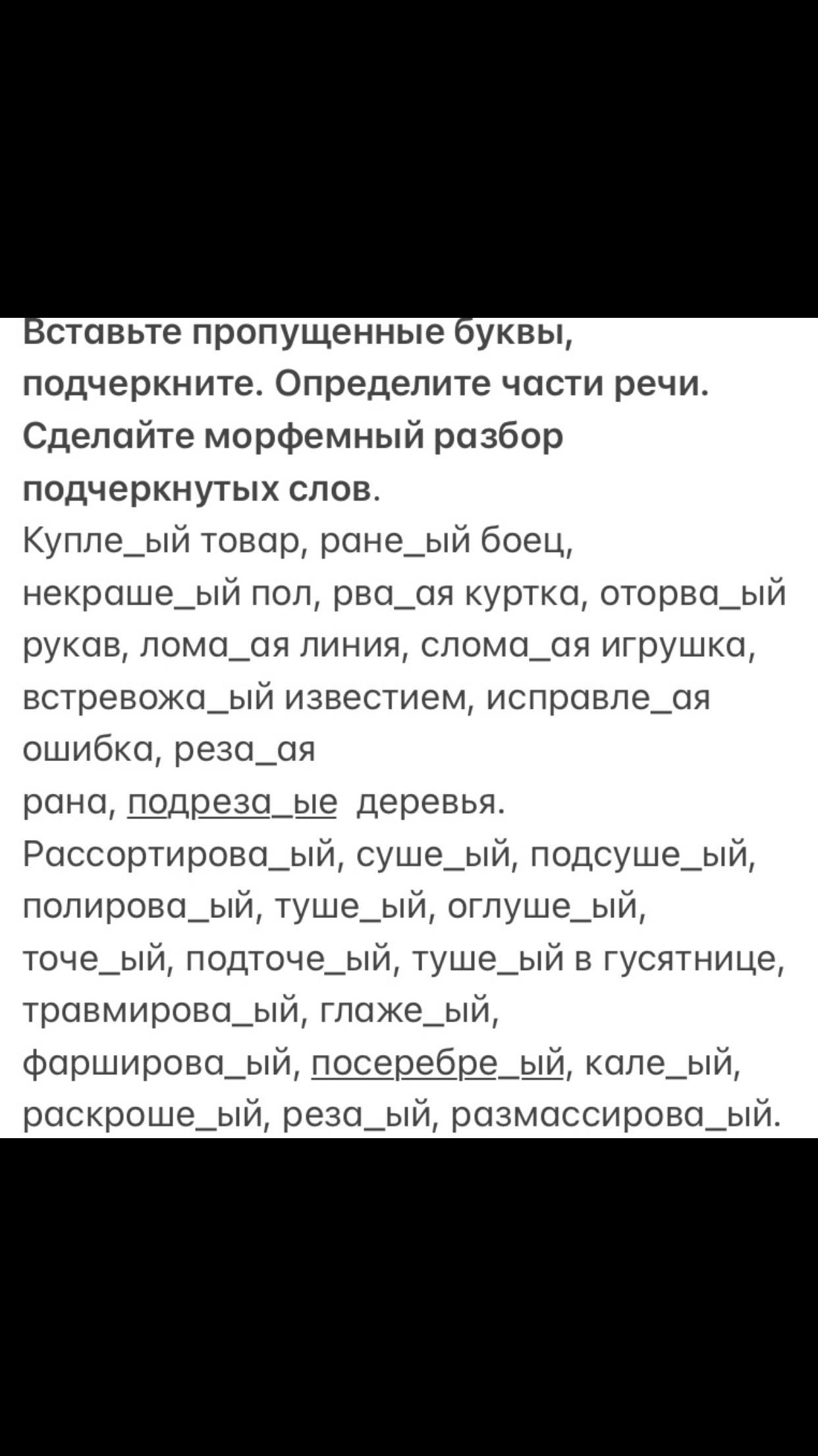 купленый товар, раненый боец, накрашеный пол, порваная куртка,оторваный рукав, ламаная линия, сломаная игрушка, востревожаный известие, исправленая оценка, резаная рана, подрезаные деревья, расортированый, сушеные, подсушеный, полированый, тушеный, оглушеный, точений, постоянный, травмированый, фаршированый, разсмассированый