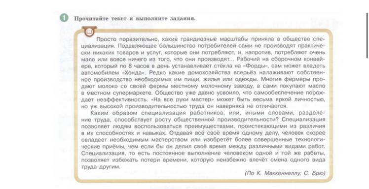 выделите фрагмент в тексте,в котором объясняется влияние специализации на общественную производительность