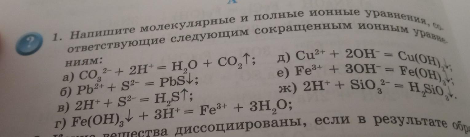 1 . Напишите молекулярные и полные ионные уравнения , с соответствующие следующим сокращенным ионным уравнениям: