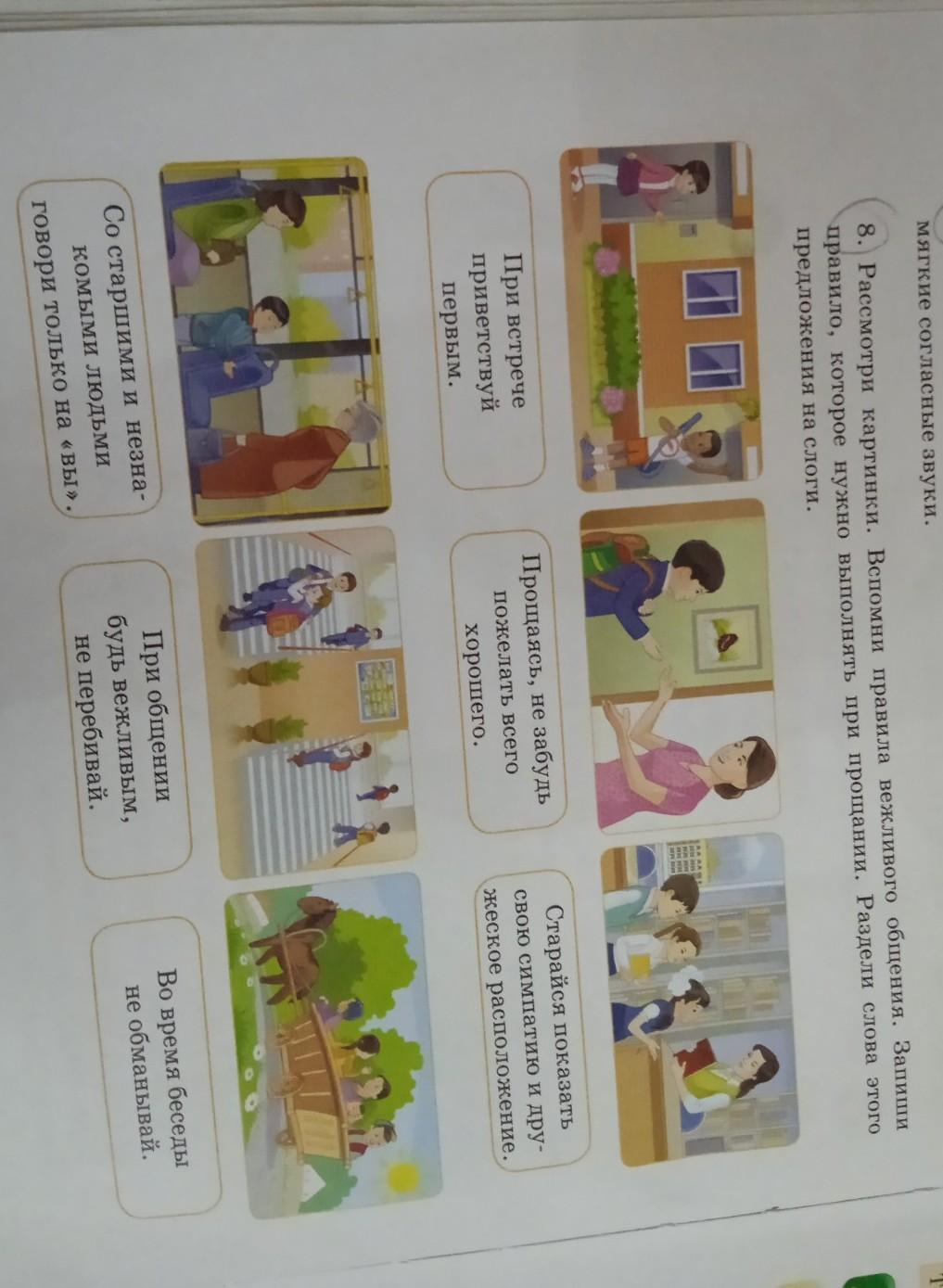 8. Рассмотри картинки, Вспомни правила вежливого общения. Запиши правило, которое нужно выполнять при прощании.