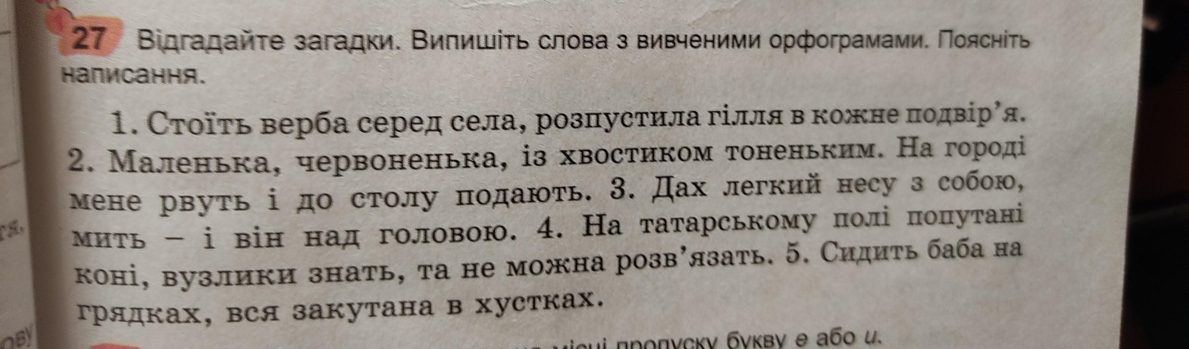 Подвір'я, розв'язать - апостроф після р та після губної літери в. Червоненька, сидить - ненаголошені голосні у коренях слів (перевірка червень).