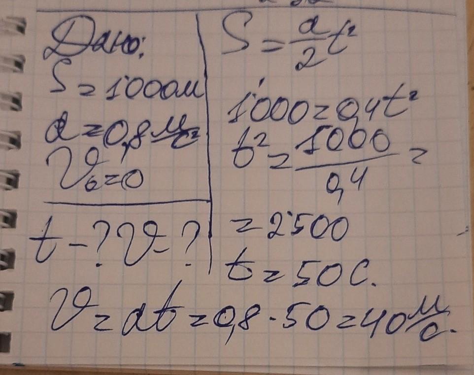 Сколько времени понадобилось, чтобы пересечь эту дорогу на мотоцикле и проехать 1 км дороги с постоянным ускорением 0,8 мс2? Какая скорость у мотоциклиста в конце дороги?