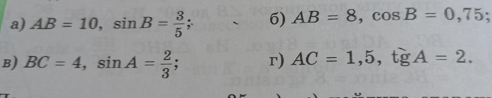 3) AC = 8 см, tg B = 3