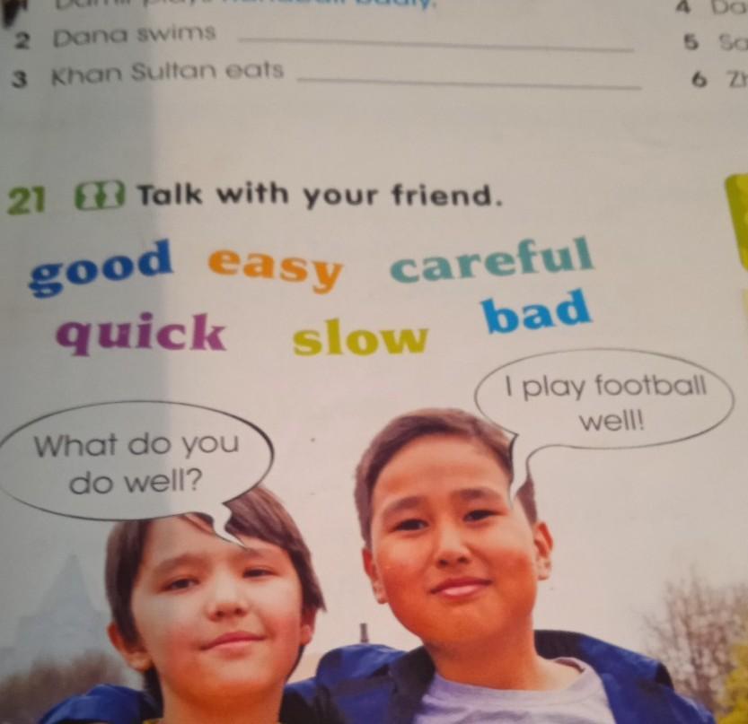 Good у нас обозначает хорошо. А мальчик ответил Ай плай футбал уелл, уелл это одна форма гуд значит гуд это и есть уелл они оба обозначают хорошо. Малчик спрашивает что у тебя получается хорошо или что ты делаешь хорошо. Я не поняла вопрос по этому не могу ответить