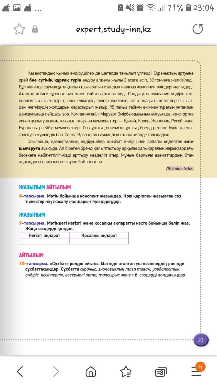 Мәтіннен негізгі және қосалқы ақпаратты жазу