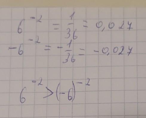 (-6) в степени -2, -6 умножаем на -6=0,027