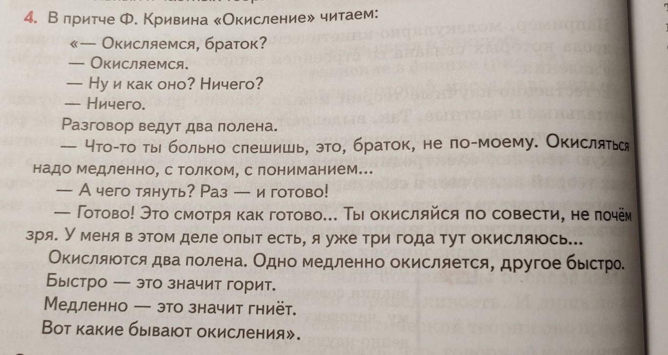 В притче Ф. Кривина "Окисление" определите какой из процессов является более общим, а какой частным, аргументируйте свой ответ.