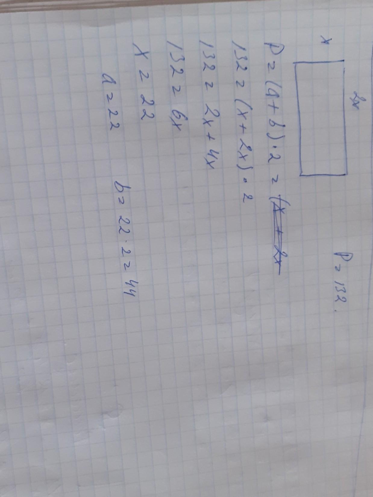 5. Одна сторона прямоугольника в 2 раза больше другой. Найдите стороны прямоугольника если его периметр равен 132 см.