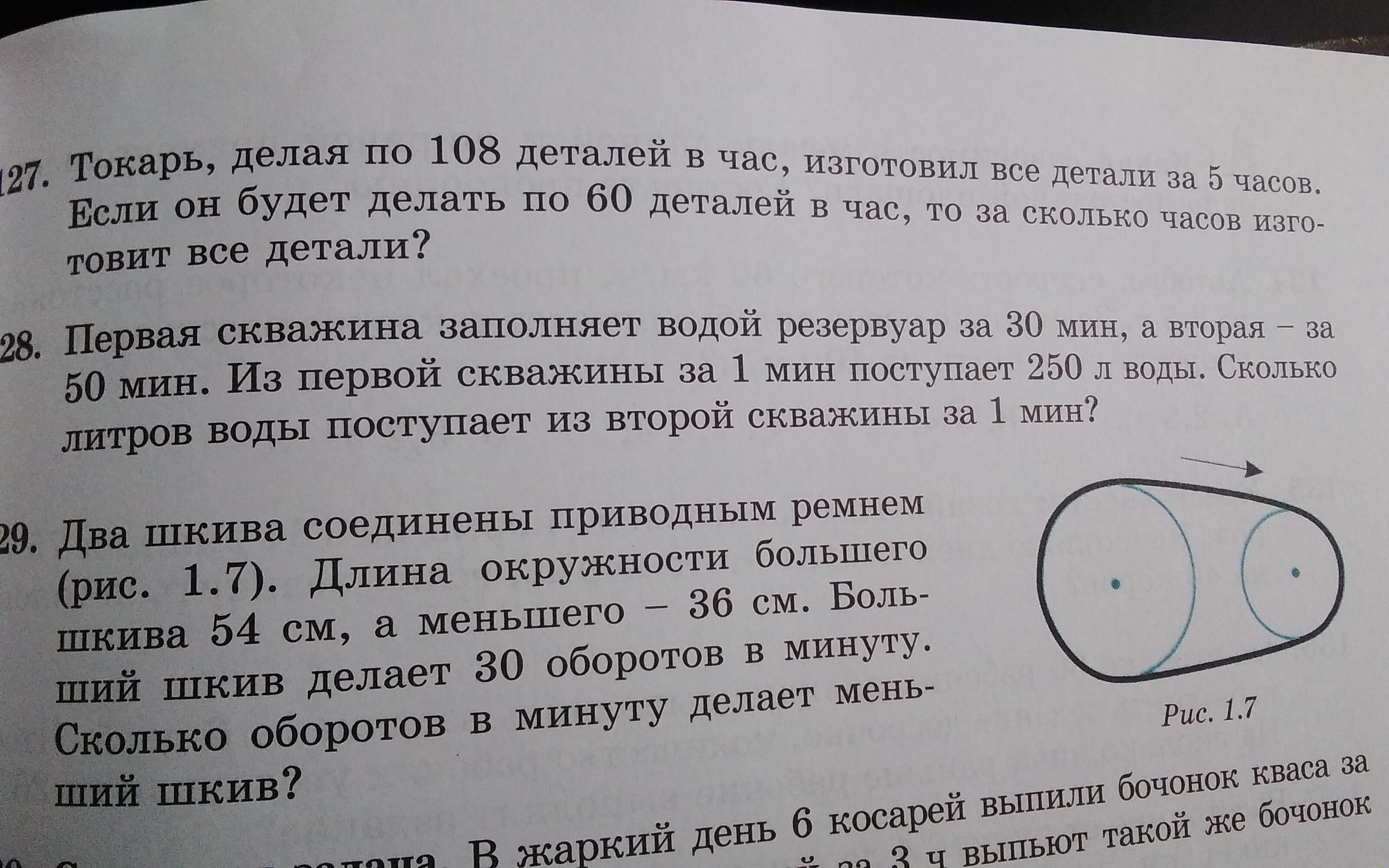 Первая скважина заполняет водой резервуар за 30 мин, а вторая - за 50 мин. Из первой скважины за 1 мин. поступает 205 л. воды.Сколько литров воды поступает из второй скважины за 1 мин?