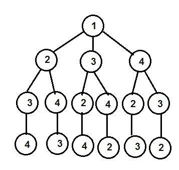 Вырастим 4 дерева с корнями 1, 2, 3, 4 (пример дерева с корнем 1 см. ниже)